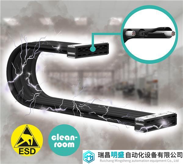 为保证ESD敏感元器件生产的安全性和洁净度,igus新开发出一款ESD版本的e-skin flat系列,同时也有可更换的管线。(来源:igus GmbH)